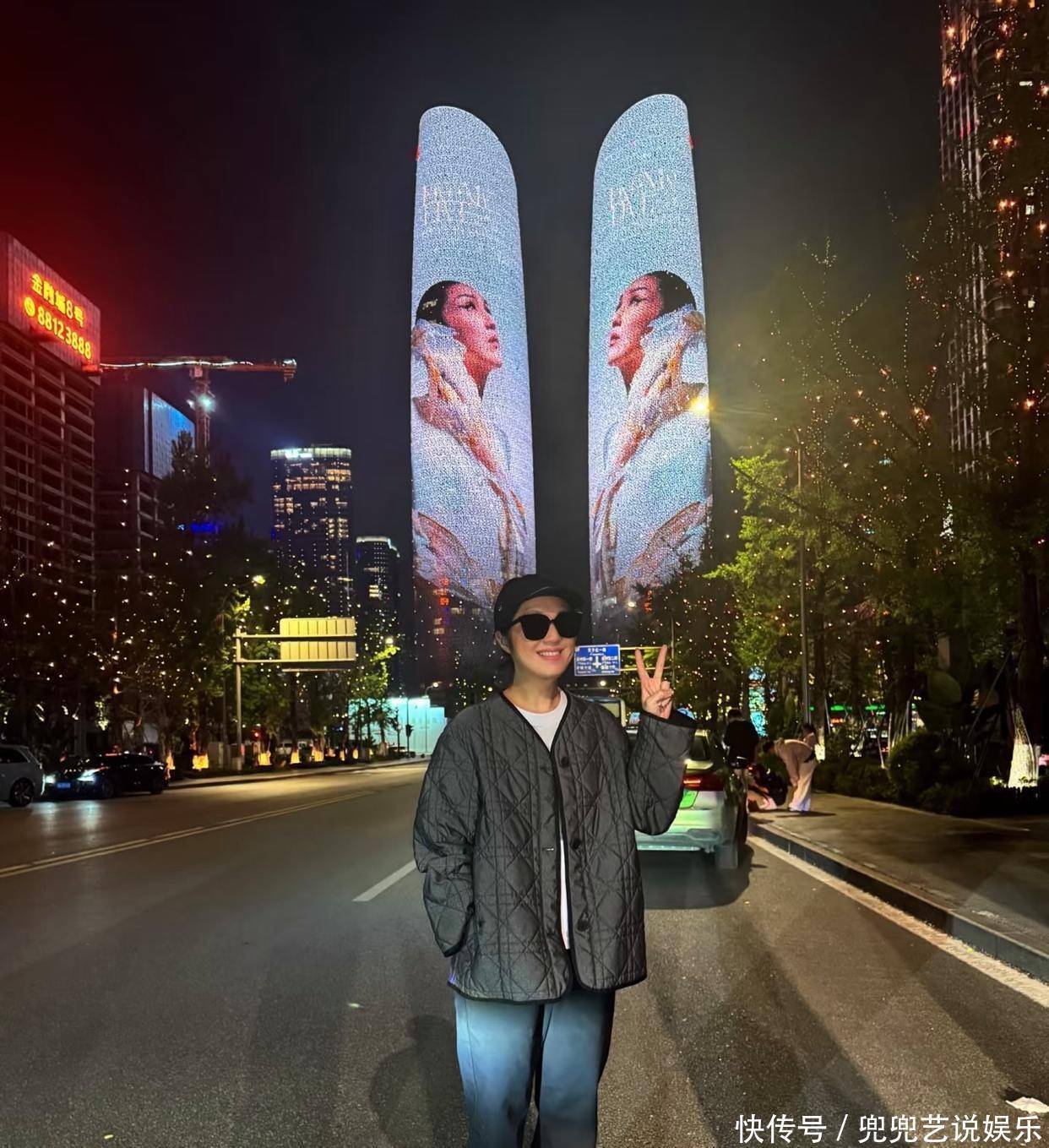 杨千嬅打卡成都双子塔