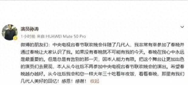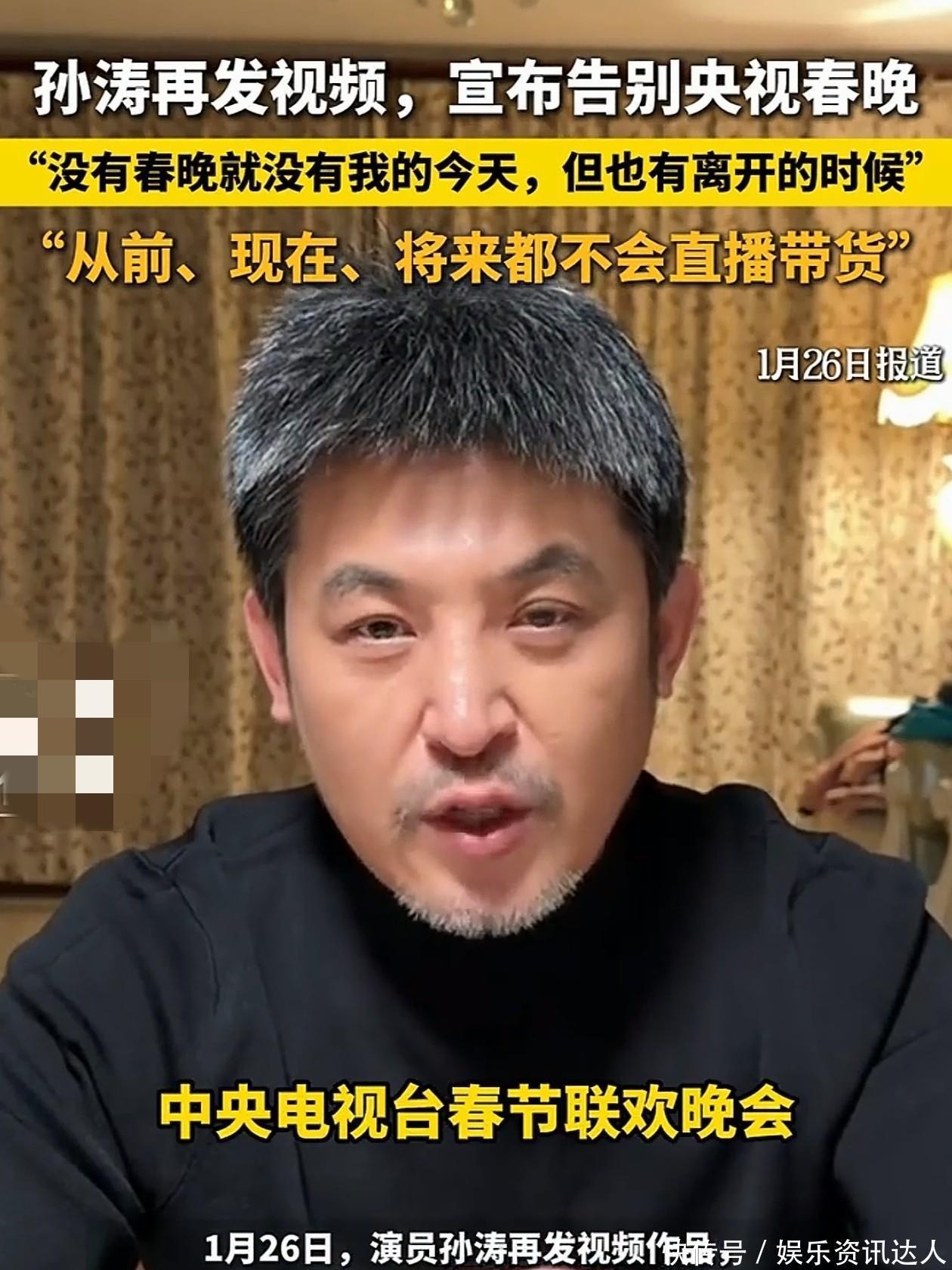 又一记重锤砸在春晚的记忆上!1月26日,演了二十多年春晚、高喊了无数遍“我骄傲”的孙涛,通过视频正式宣布:从此告别央视春晚舞台。