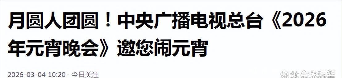 今日关注《月圆人团圆!中央广播电视总台《2026年元宵晚会》邀您闹元宵》发布时间:2026.3.4